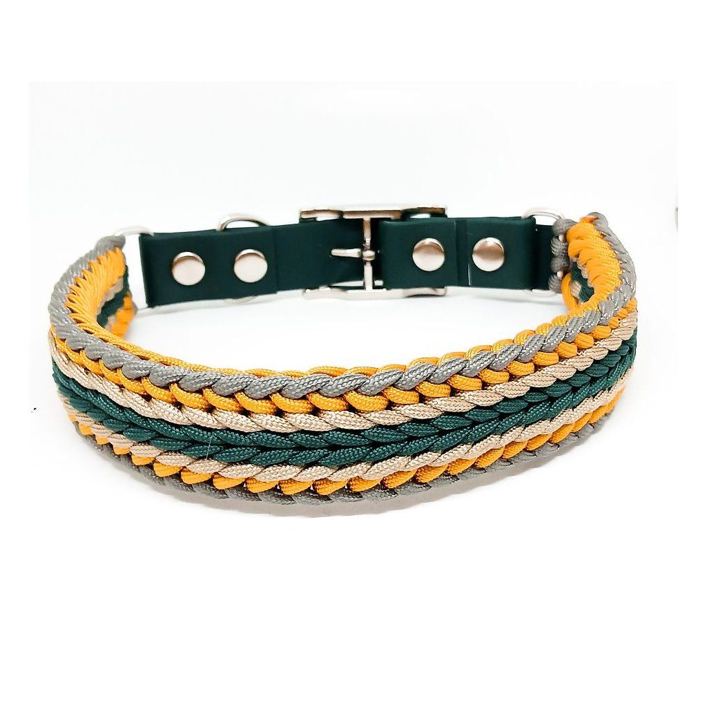 Paracord je skvělý materiál pro výrobu obojků. Jedná se o velice pevný, odolný a kvalitní materiál. Většina našich obojků a vodítek je vyrobena z Paracordu 550. Tento typ paracordu má minimální zatížení při přetržení 249 Kg. Je tedy vhodný i na výrobu obojků pro velká plemena psů nebo pro pejsky, kteří na vodítku tahají. Jedno lanko Paracordu 550 má průměr 4mm. Na trhu v současné době nespočet barevných provedení tohoto typu lana. V naší nabídce naleznete 54+ barev Paracordu 550 a můžete si z nich sestavit vlastní obojek nebo vodítko na míru přímo pro svého pejska.