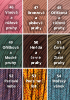 Zde je uvedený vzorník barev, ze kterých lze obojek sestavit. U každého pletení je možné vybrat jiný počet barev, ze kterých pro Vás obojek upleteme.