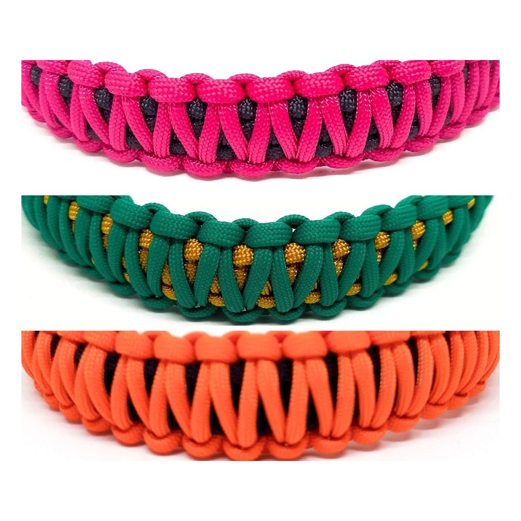 Obojek je pletený ze 2 lanek Paracordu550