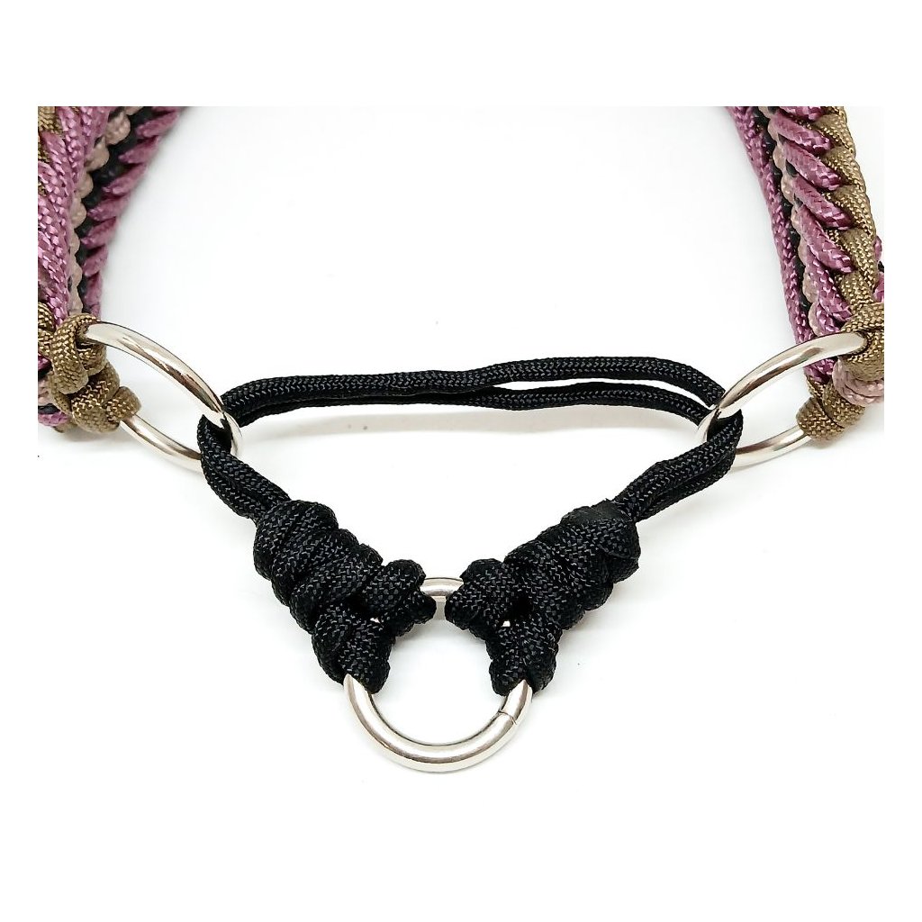 Jedná se o velice oblíbený typ obojku. Obojek se nasazuje pejskovi přes hlavu, proto doporučujeme změřit i obvod hlavy, aby obojek šel pohodlně vavléknout i sundat. Tento polostahovací mechanismus se skládá ze 3 sedlářských kroužků, mezi kterými je napletený Paracord 550. Díky polostahovacímu mechanismu se eliminuje riziko vyvléknutí pejska z obojku. Když pejsek na vodítku zatáhne, obojek se těsněji stáhne okolo jeho krku. Tento typ obojků je také vhodný pro trénink, kdy se snažíte odnaučit pejska na vodítku tahat.