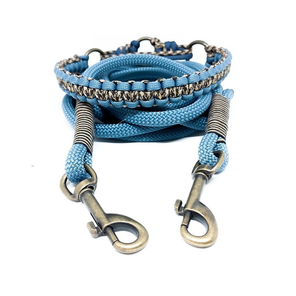 Paracord550: Materiál nabízený nejrůznějších barevných kombinacích, průměr jednoho lana je cca 4mm. Lano má 32 pramenů a 7 měkkých, kroucených jader. Lano je vyrobeno z Nylonu nebo Polyesteru. Tento typ je vhodný pro výrobu psích vodítek a obojků. minimální zatížení při přetržení je 249 Kg.