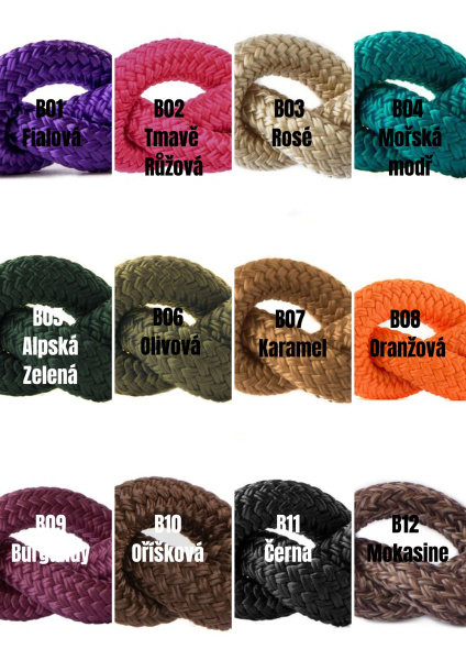 Vyberte si jednu barvu a její číslo uveďte do poznámky k objednávce. Jedná se o vzorník PPM lan o průměru 14mm.